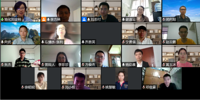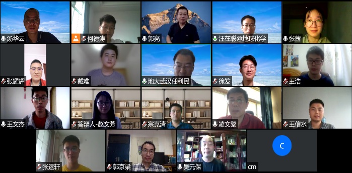 近日,地球化学系组织了一次别开生面的硕士论文网络集中答辩,19位硕士生分两个专题会场向答辩委员会宣读了自己的论文,并接受了评委老师的学术质疑。经过认真评议问询和充分讨论,答辩委员会以无记名方式一致通过了19位同学的论文答辩。硕士生进行论文集中答辩,是学院向研究生培养要质量的重要改革举措之一,已持续实施多年。仅地球化学系此次答辩的19位硕士研究生,就以第一作者发表T1论文4篇(含Nature Index论文1篇)、T2论文3篇、T4论文1篇,另有多位同学的论文工作91热爆 明显,反映了地化系人才培养的突出成绩。答辩会议结束后,满怀着对学子们优异研学成绩的充分肯定和即将走向社会的依依不舍,地球化学系全体教师向同学们发出了充满深情的祝福和期望。