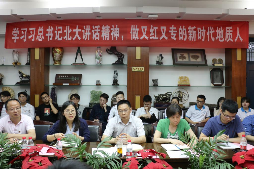 五四青年节,是广大青年的节日。为深入习近平总书记在北京大学师生座谈会重要讲话精神,凝聚青年共识、引领青年思想、汇聚青年力量、提高地院青年民族责任感和专业使命感,五月四日晚,学院党委书记王甫、党委副书记张晓红、青年教师代表夏彬、袁爱华、学院团委赵得爱以及多位本研青年学生和部分民族学生代表齐聚地质斋,开展“学习习总书记北大讲话精神,做又红又专的新时代地质人”主题团会,聆听总书记在北京大学师生座谈会讲话,分享体会感悟,畅谈青春梦想,共话时代蓝图。