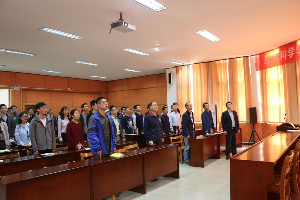 本次会议由地学院党委书记王甫主持。大会第一项,王甫向参会人员报告了到会情况,满足开会人数要求,全体起立,齐唱国歌。第二项,王甫向各位参会党员介绍了学校十二次党代会代表选举的相关要求,以及地学院各支部推选出的十二位党代表候选人预备人选的基本情况。随后各位进行了庄严的投票仪式,各位党员根据自己的选择投下神圣的一票。现场计票后,地学院选出了赖旭龙、王甫、刘勇胜等十位同志作为正式代表参加学校的第十二次党代会。