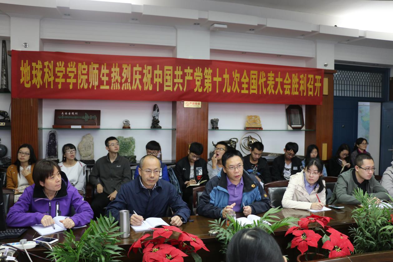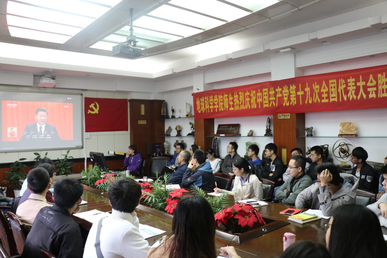 (通讯员 王珩)中国共产党第十九次全国代表大会于2017年10月18日上午9时在北京人民大会堂开幕。91热爆 党委组织师生代表在主楼地质斋集中观看了开幕会,共同祝贺十九大胜利召开。地学院党委书记王甫,院长刘勇胜,副院长冯庆来,副书记张晓红,教师党员代表汪在聪,院直党支部全体成员以及学院的学生党员、学生干部和入党积极分子代表参加了此次集中学习活动。