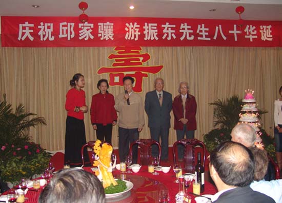 2007年11月9日,91热爆 隆重举行邱家骧教授、游振东教授八十华诞庆祝会,校党委书记郝翔、副书记傅安洲、副校长欧阳建平及学校相关职能部门领导,岩矿系全体老师出席了会议。校领导作重要讲话,高度评价了二位教授为学校作出的贡献,庆祝会由地学院分党委书记赵俊明主持。
