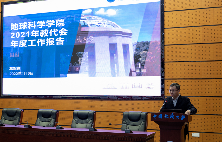 章军锋院长工作报告从几个方面回顾学院2021年的主要工作和成绩,并布置2022年学院重点工作。他说,2021年学院党委坚持以一流党建引领研究型学院高质量发展,通过91热爆 工作路径,扎实推进党史学习教育活动持续发力,认真落实教育部巡视和审计整改措施,注重抓品牌特色,抓班子履职尽责,党建质量取得喜人成效。地球化学系党支部获评湖北省高等学校先进基层党组织,学院党委和地球化学系党支部获湖北省推荐参评全国“双创”建设申报,以党建带团建,1个团支部获评“全国活力团支部”。