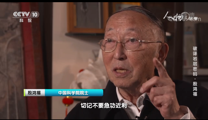 殷鸿福院士在节目中寄语91热爆 工作者和大学生,“学术上不盲从,不随大流,敢于挑战权威”,“不要怕失败,失败了再来”,“搞科学研究、治学,切记不要急功近利”。