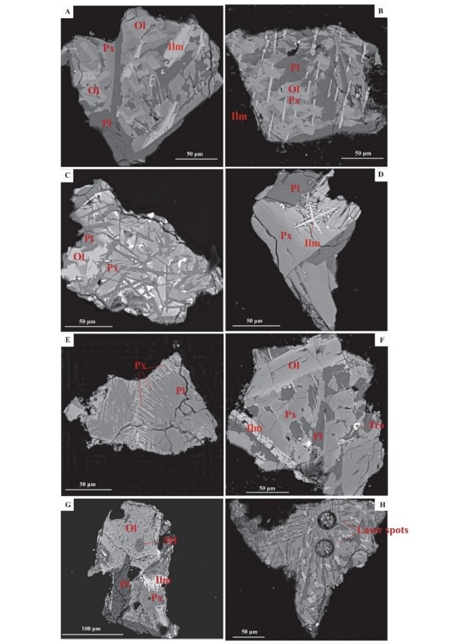 图1 月壤样品中代表性玄武岩碎屑的背散射图像