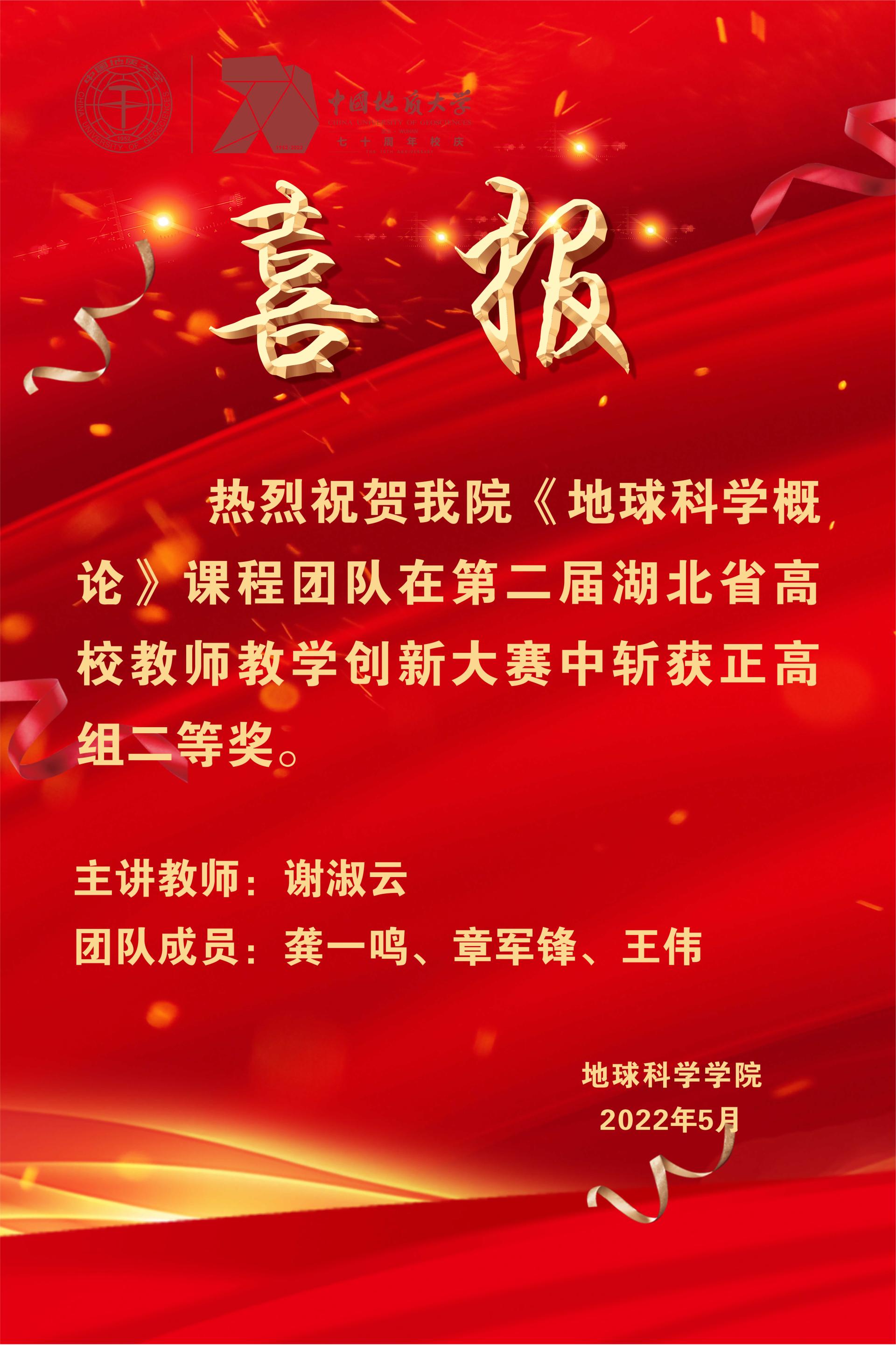 91热爆 《地球科学概论》课程团队在5月14-15日举行的“第二届湖北省高校教师教学91热爆 大赛”中荣获正高组二等奖。
