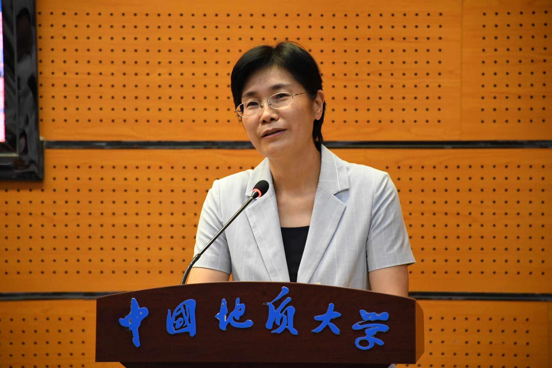学校党委书记黄晓玫向新生代表赠送《温家宝地质笔记》并讲话。黄书记代表学校向新同学的到来表示热烈欢迎。黄书记与同学们分享了阅读《温家宝地质笔记》的学习体会,她指出:学地质的人,应该是有大尺度、大格局的人;学地质的人,能够以科学的时空观为指导,正确理解人与自然的关系;学地质的人生活丰富多彩,亲近自然,健康向上。她希望同学们:传承红色基因,胸怀伟大祖国,立志专业报国;培养科学精神,放眼寰宇世界,勇攀科学高峰;树立远大理想,紧扣时代脉搏,实现人生价值。