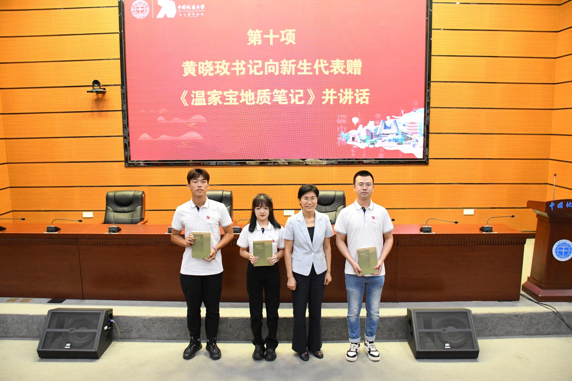 学校党委书记黄晓玫向新生代表赠《温家宝地质笔记》