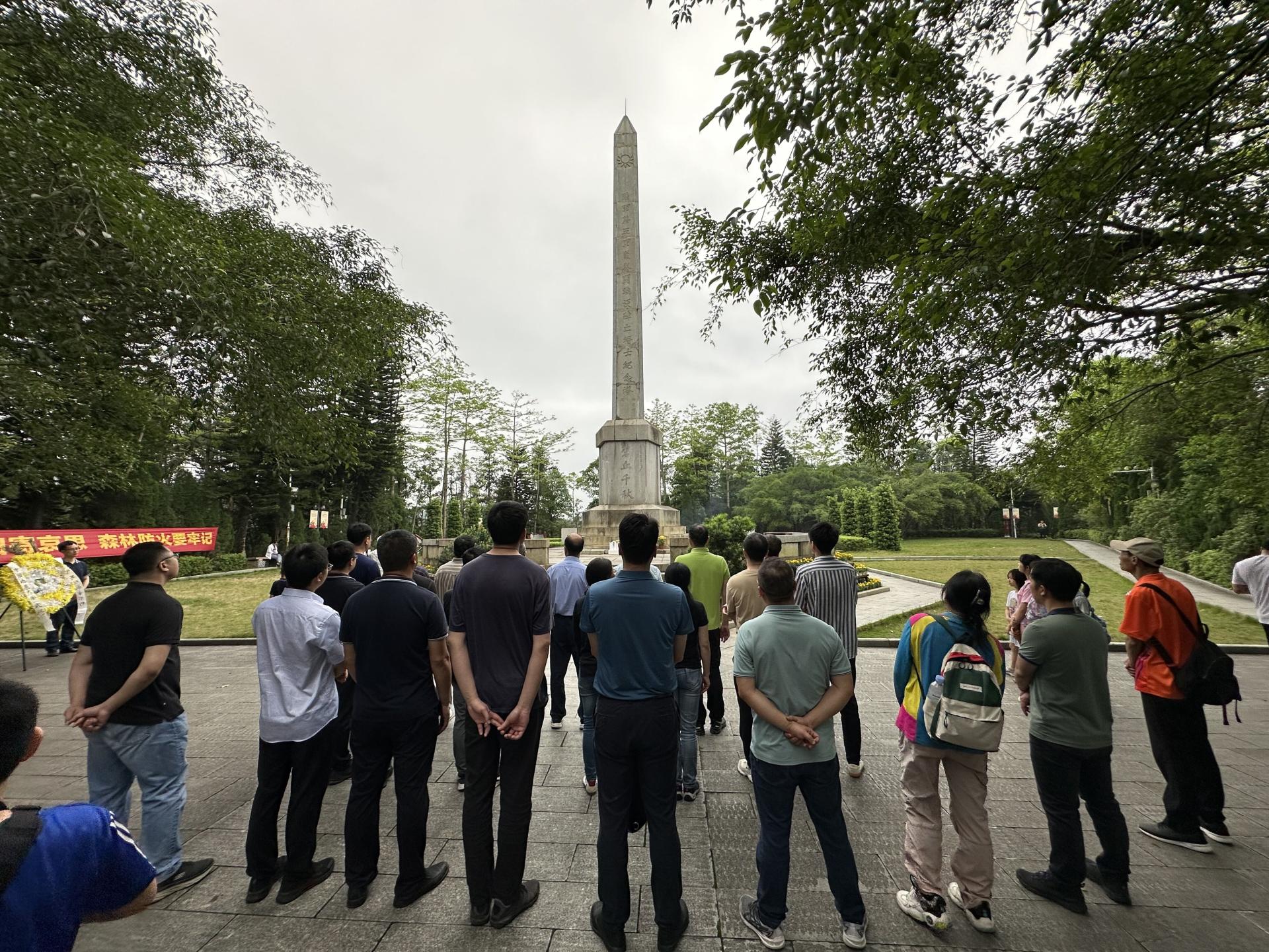 随后,参观了昆仑关战役阵亡将士墓园,墓园包括阵亡将士纪念塔、将士公墓、纪战碑亭、北牌坊、南牌坊。学院教师和校友向烈士们敬献花圈,在纪念塔前向烈士鞠躬致敬缅怀。纪念塔北侧是3座中国军队阵亡将士公墓,公墓下面掩埋着阵亡将士的遗骨。墓台前方竖立着三块花岗岩墓碑,上面刻载着3400多位阵亡将士英名。大家纷纷表示,今天的美好生活都是由无数的先烈们用自己宝贵的生命换来的。