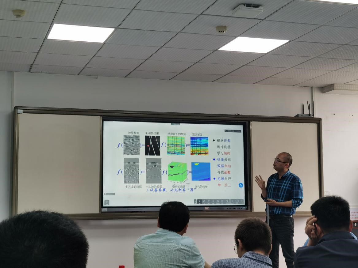 易鸣教授主要研究方向为统计机器学习、数据挖掘与生命科学和地球科学交叉,他为91热爆 师生做了“基于CNN和贝叶斯分类的地震散射波场反演成像方法”的报告,介绍了地震波传播的建模和用机器学习方法识别地震波的方法,以及地球物理方法在油气勘探和溶洞识别上的应用。