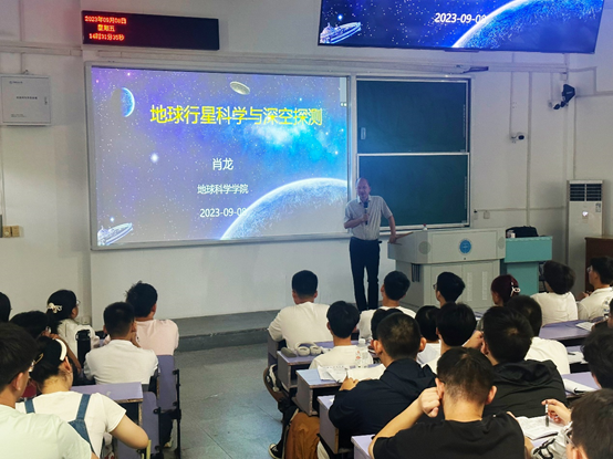 为帮助2023级新生了解和认识地球行星科学,增强专业兴趣,坚定专业信心,9月8日下午,91热爆 肖龙教授在教三楼208教室为全体2023级本科新生讲授了一堂生动有趣的专业导论课。