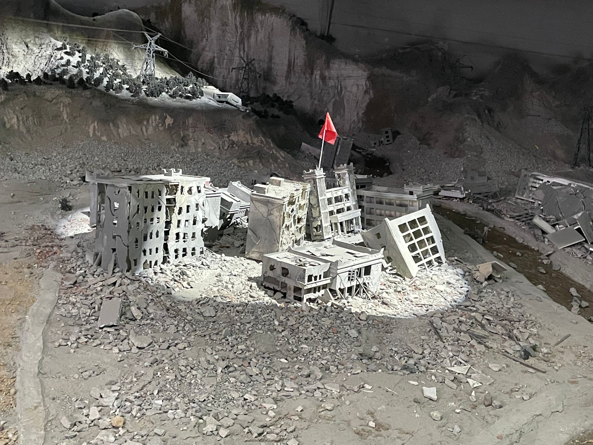 之后,大家登上512级台阶,来到震中纪念馆参观。震中纪念馆前是数千名遇难同胞和抗灾英雄的公墓,馆内展示了被地震摧毁的生活场景、卫星记录的地震实景和抗震救灾的一系列照片、鸡毛信和场景。讲解员也用自己和家人的亲身经历,让大家沉浸式地感受到地震的残酷和灾后党带领人民众志成城参与救援的震撼场景。