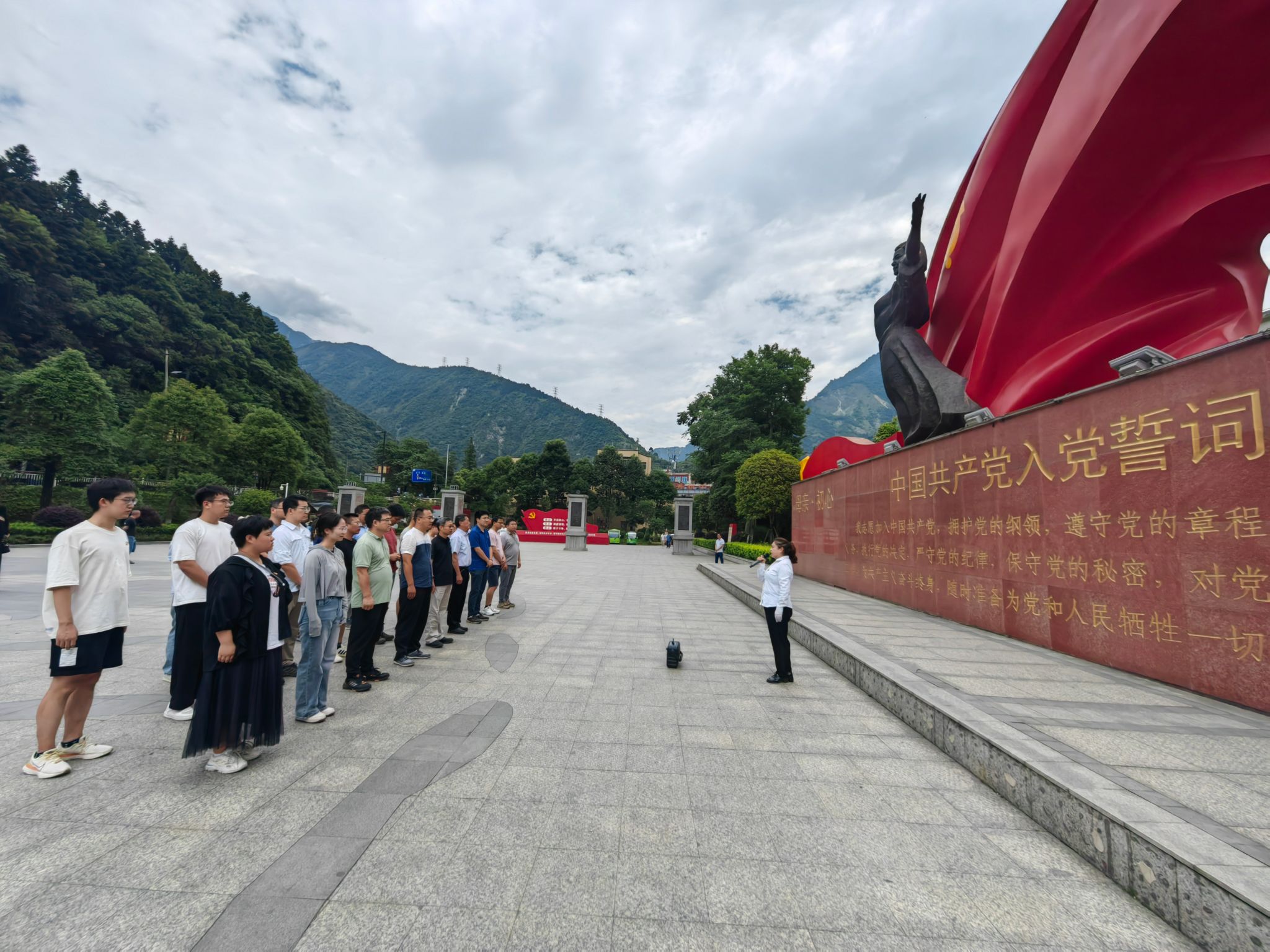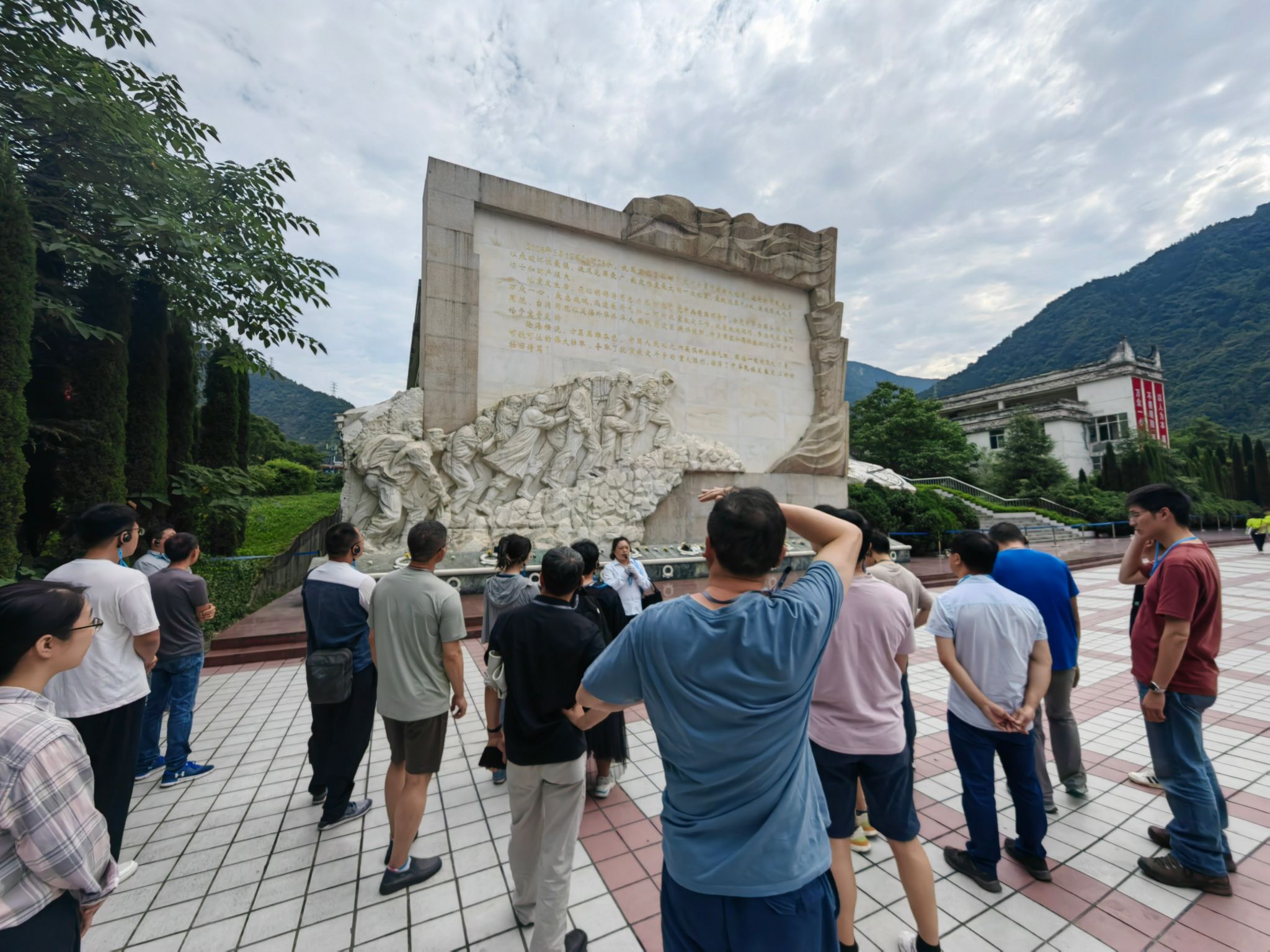 构造地质学与地球动力学系承担我校多个学院《构造地质学》等本科课程的教学工作,而“5·12汶川地震”则是每位老师在课堂上都会讲到的构造运动,但大部分老师却从未真正亲临汶川。为了能够让老师们更加深入的体会地震的破坏力,从而更好地讲好《构造地质学》这门课,构造系党支部特别安排了此次野外备课和爱国主义教育活动。在映秀,师生一行26人先后参观了虹口深溪沟地震遗迹、漩口中学遗址、震中纪念馆,并在家国情怀·宣誓广场接受党史党纪学习教育、重温入党誓词。