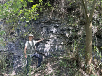 参观完遵义会议会址后,考察团队与贵州省地矿局106地质大队合作,对陡山沱组内部的磷块岩层进行了实地考察。团队首先在松林地区发现了南沱组冰碛砾岩。通过对砾石的岩性组成、磨圆、分选和支撑类型进行细致的观察描述,团队成员们对冰期沉积环境有了更加直观的认识。随后考察团队跟随带队专家继续前进,在大坝坡观察到了陡山沱组白云岩,其中夹杂有多层磷块岩,含磷岩层厚约40厘米,顶板为薄层硅质页岩。通过观察陡山沱组磷块岩与白云岩的共生关系,以及含磷岩层与硅质页岩的接触关系,考察团队获得了宝贵的野外实际资料,不仅丰富了团队成员对磷矿床地质特征的认识,而且加深了对其形成条件和地质背景的理解。