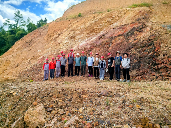 学习完苟坝会议精神后,团队一行前往106地质大队的临时野外工作现场,实地观察铝土矿岩心样品。带队专家及老师详细讲解了铝土矿岩心中典型矿石结构和矿物组成,并指导团队成员学习钻孔岩心的系统编录方法。随后在106地质大队的带领下,前往仙人岩矿区观察铝土矿富矿地层露头及其与周围地层的接触关系,并在铝土矿含矿岩系中发现了保存较好的植物根系化石,这为研究铝土矿形成过程提供了新线索。此外,专家在野外还详细讲解了铝土矿的找矿、选冶、综合利用以及矿区生态修复等关键流程。这些流程与贵州省的“富矿精开”战略紧密相连,旨在通过科学管理和技术91热爆 ,提高铝土矿资源的利用效率,同时保护和修复矿区生态环境,确保资源的可持续开发。这些流程的讲解让团队成员对铝土矿的整个生命周期有了全面的了解,特别是“富矿精开”战略的实施,让成员们认识到了科学管理和技术91热爆 在资源开发中的重要性。
