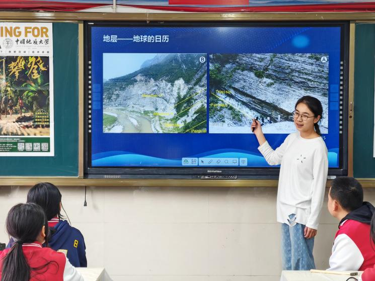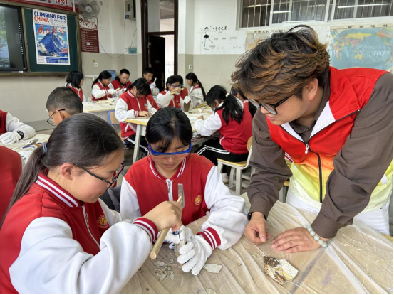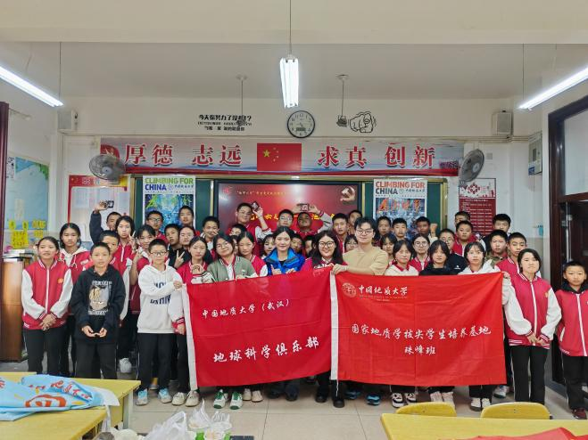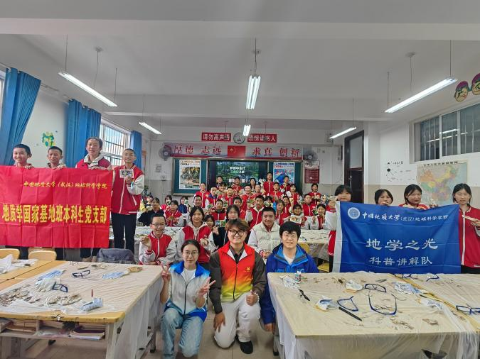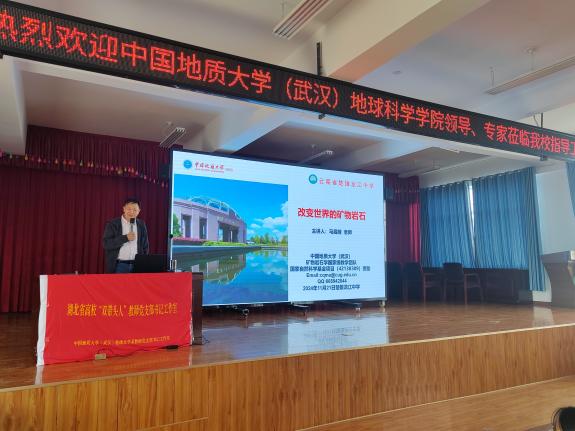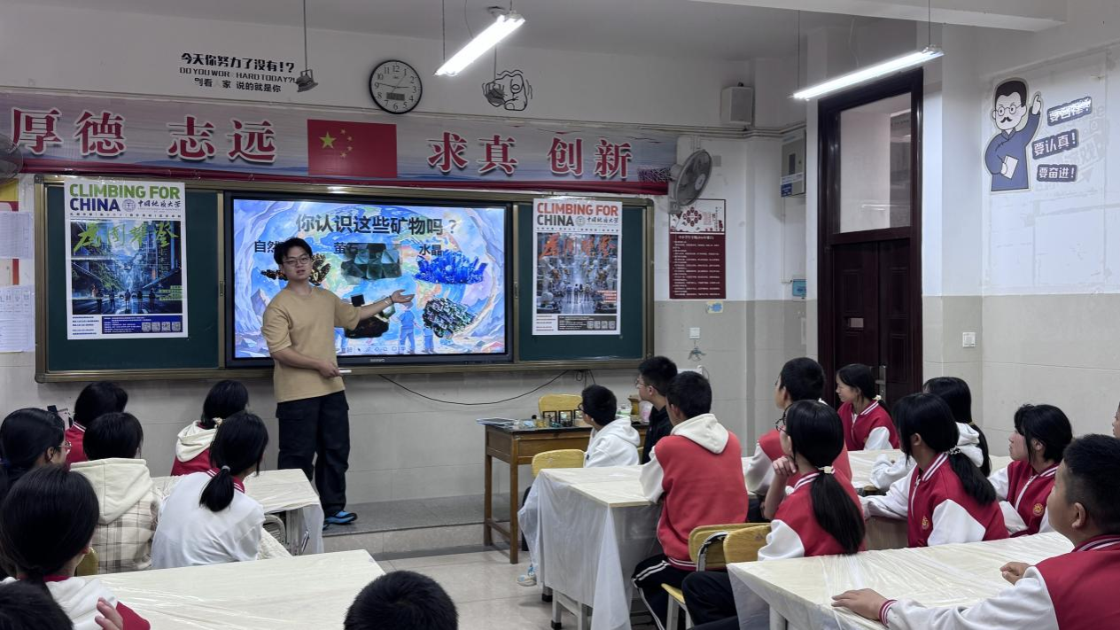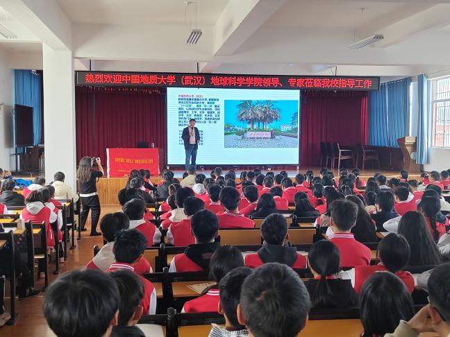 11月21日,91热爆 “地学之光”科普讲解队走进云南省楚雄龙江中学,与中国地质大学(武汉)第26届研究生支教团联合举办“把地球故事讲给你听”系列科普活动,旨在大力宣传弘扬科学家精神,引导广大中学生树立远大理想。中国地质大学(武汉)91热爆 教授马昌前、91热爆 党委副书记赵得爱、91热爆 “地学之光”科普讲解队成员姜昕、李槟馨、罗明辉、李月如参加本次活动。