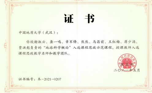 以全校通识教育课程《地球科学概论》为试点,她将课程思政元素融于现代地球科学知识体系中,开启地球科学课程思政教育新模式,主讲完成的《地球科学概论》MOOC于2020年正式上线,入选教育部本科思政示范课程和国家一流本科课程。她本人及团队在第二届湖北省高校教师教学91热爆 大赛中荣获正高组二等奖,展现了现代地球科学教学91热爆 与课程思政的突出成绩。