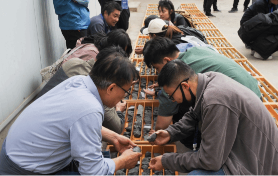 当天上午,在第四地质大队引导下,两校人员还共同前往黑山铁矿区进行了野外考察,并在下午对矿区保存的岩芯样品开展细致观察。黑山铁矿床是大庙斜长岩杂岩体最典型、规模最大的大型铁矿床,累计探明资源储量(铁矿石量)超过1亿吨,其重要性和战略价值不言而喻。两校老师与四队工程师们,积极互动,围绕铁矿石的形成机理、开采技术、选冶工艺等开展了热烈讨论,通过交流,大家对黑山铁矿的成矿机制有了更加深入和全面的认识。