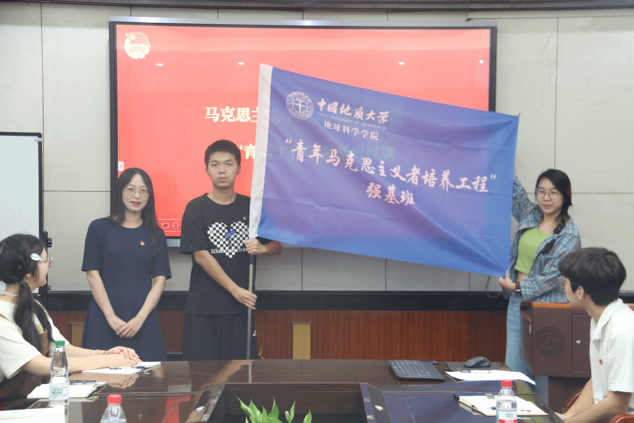 随后,马克思主义学院副教授李蔚然老师为“青年马克思主义者培养工程”强基班授旗,校团委副书记刘明辉老师为“摇篮”团校授旗。