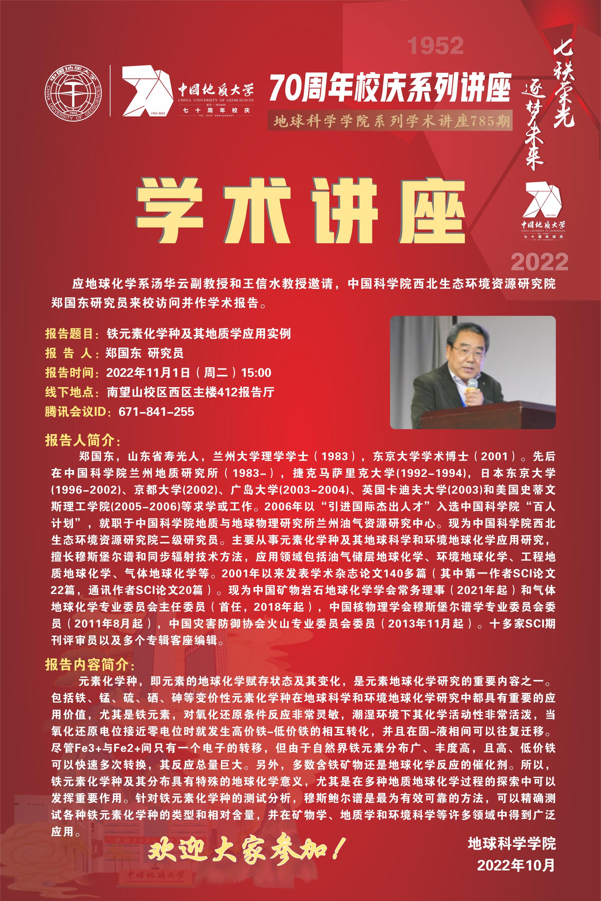 【11月1日】校庆系列学术活动---地球系统科学论坛(第785期):郑国东研究员