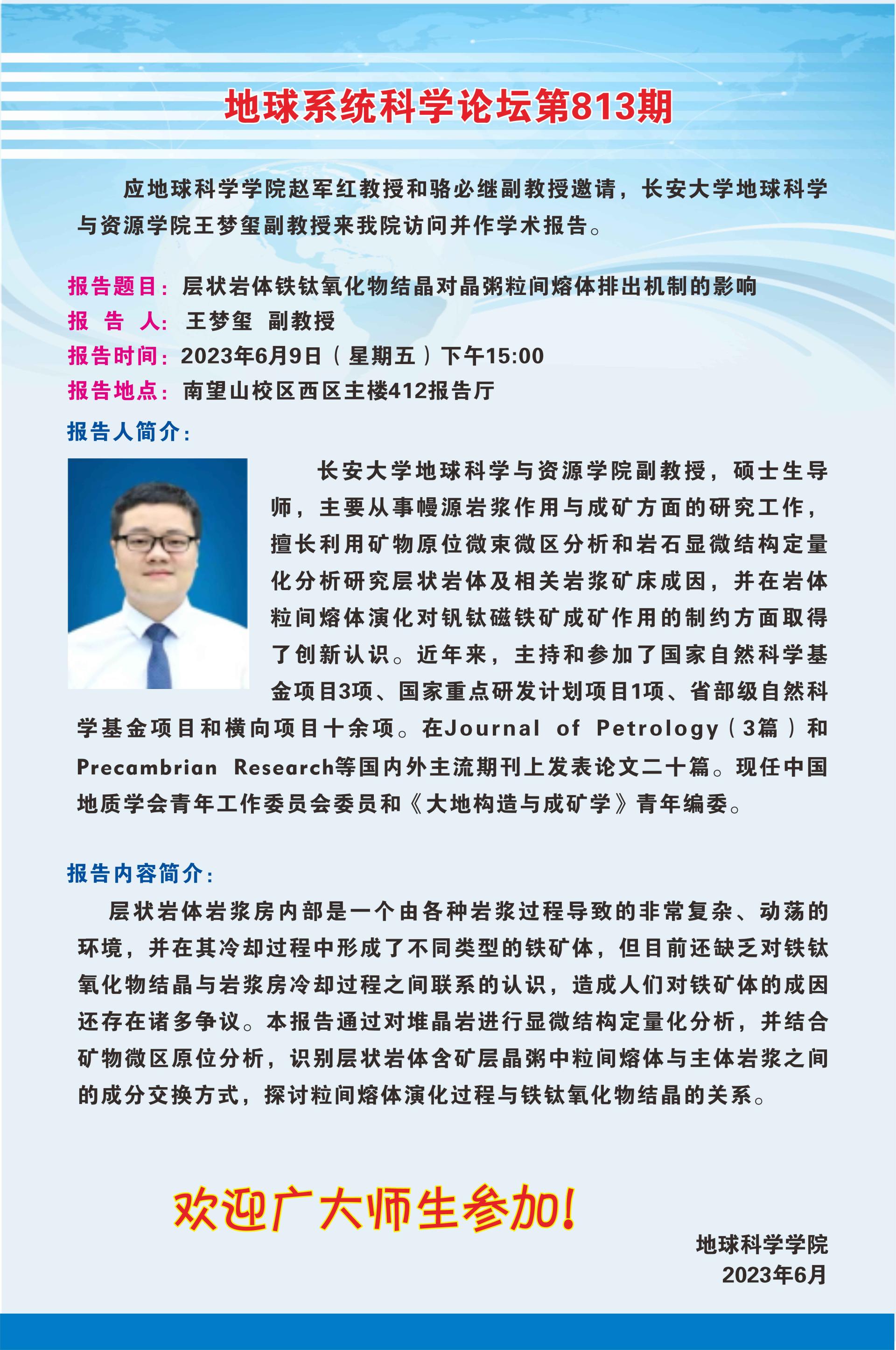 【6月9日】地球系统科学论坛(第813期)-王梦玺副教授讲座