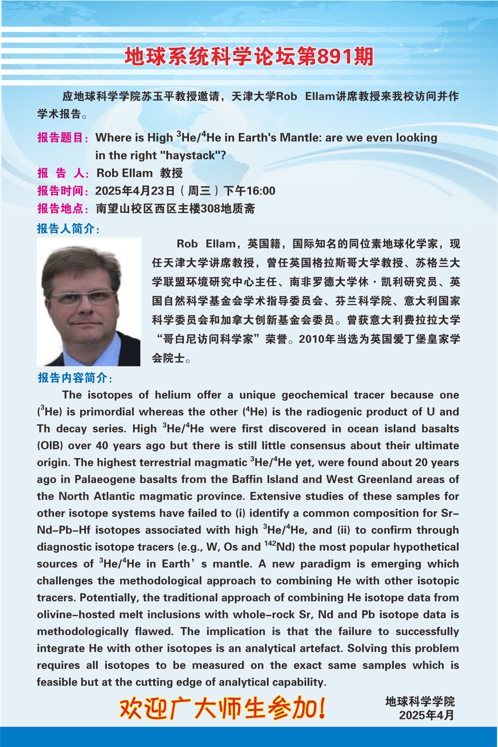 【4月23日】地球系统科学论坛第891期-Rob Ellam讲席教授
