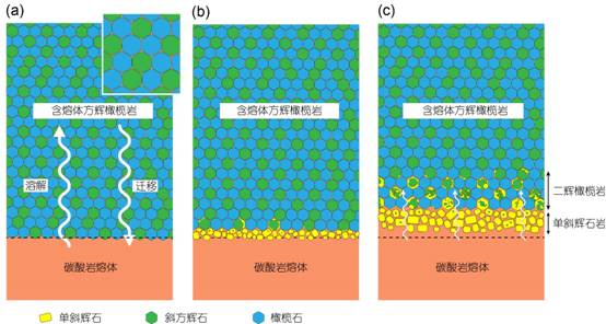 广泛存在的熔体交代作用是造成克拉通岩石圈地幔岩石学和矿物学改造以及不均一性的关键过程,因此阐明不同性质熔体-橄榄岩反应的岩相学特征、动力学机制和反应产物的成分变异对评估不同类型熔岩反应在克拉通岩石圈地幔改造和再活化过程中的贡献至关重要。