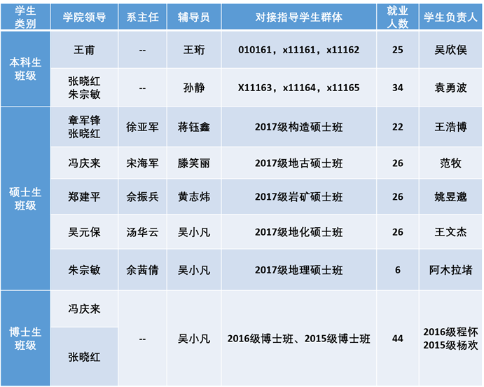 学生就业是人才培养链的“最后一公里”,是提高人才培养质量,实现地球科学领域世界一流研究型学院的重要保障。地学院始终以培养地学高层次人才为核心,以国家战略和社会需求为导向,进一步改革人才培养模式,不断提升学生培养质量,促进学生高质量就业。2020年1月以来,突如其来的新冠肺炎疫情给今年的毕业生就业带来了挑战,学院党政领导班子认真学习领会上级精神,加强形势研判,统一部署安排,调动各方资源,精准施策,为学生尽快就业、高质量就业保驾护航。