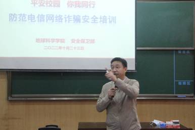 安全保卫部副部长彭冠军老师作防范电信网络诈骗安全培训