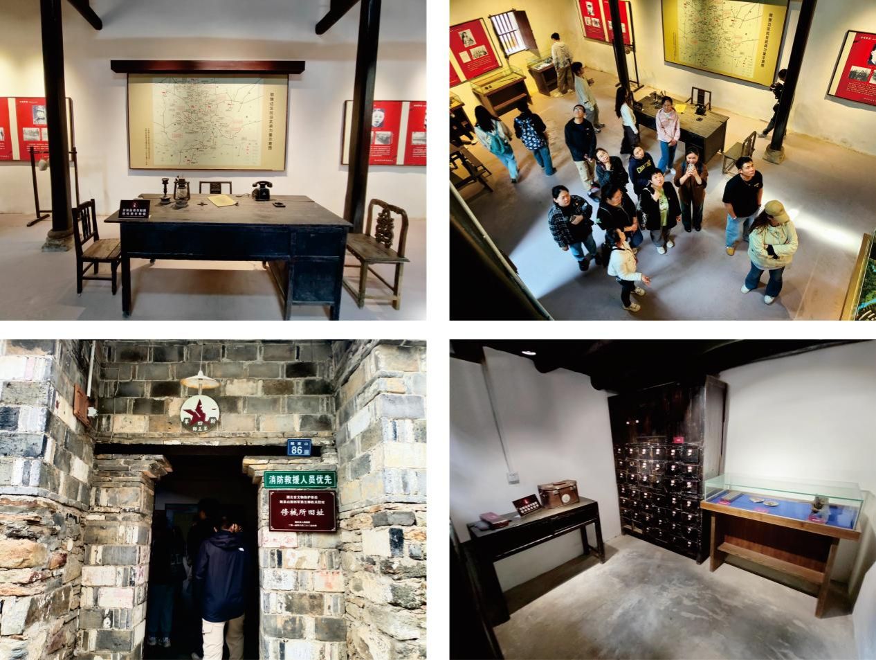 得益于村落的完好保存,在讲解员的引导下,大家也参观了司政大礼堂、枪械所、医务室、参谋处、后勤部、印刷厂等旧址。行走在充满历史痕迹的石板上,起伏不平的砖墙仿佛在诉说着革命成功的不易。这些有纪念意义的革命旧址,每一处都满含战争岁月的光荣痕迹印记,记录着那不平凡的岁月里,军民同心协力、浴血奋战,穷其姓名一生追求民族自强的精神。
