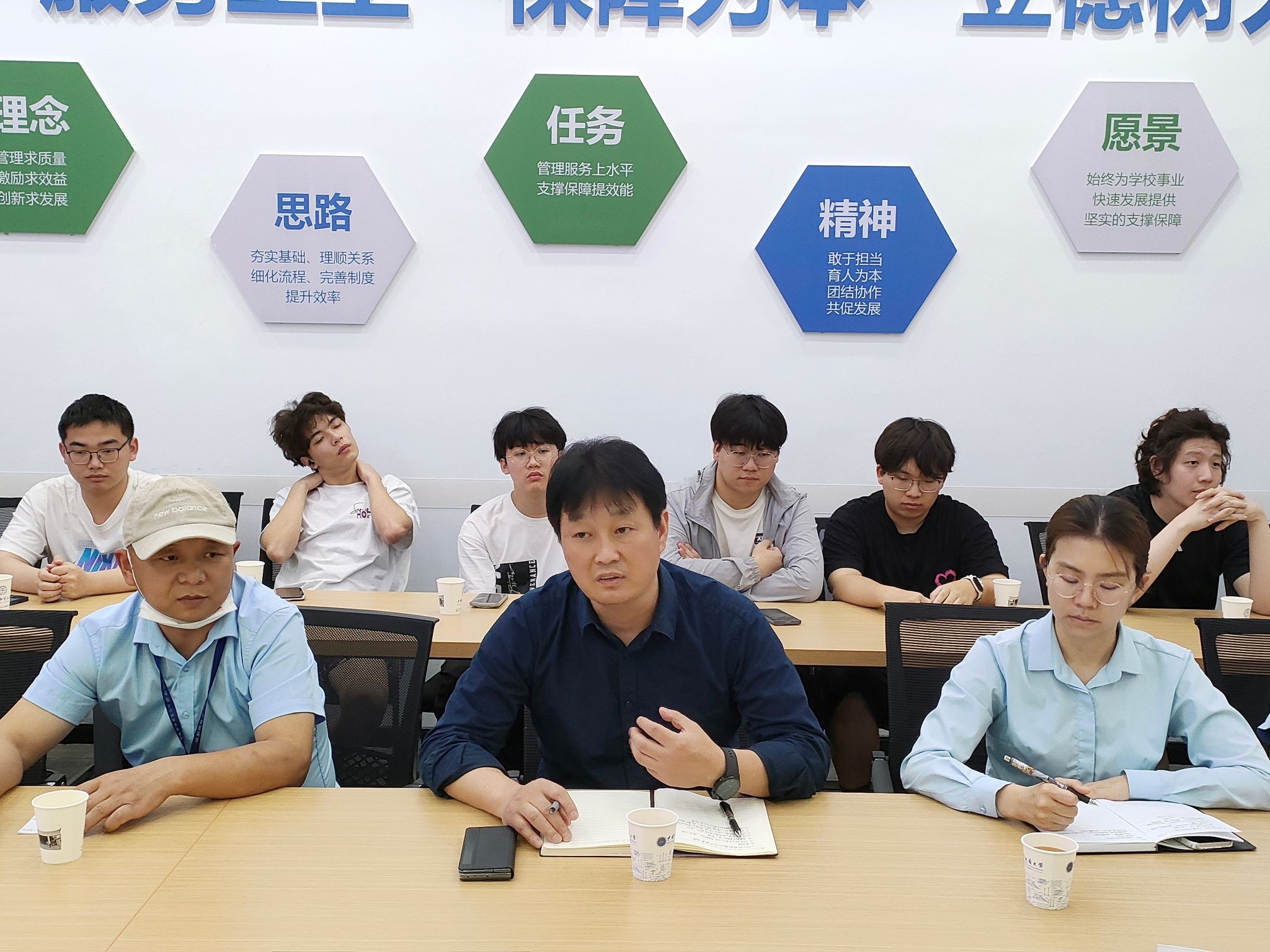 下午2点,91热爆 党委副书记赵得爱及辅导员滕笑丽与2023级珠峰班30余名学生齐聚饮食服务中心北区会议室,与饮食服务中心相关领导、工作人员展开座谈交流。