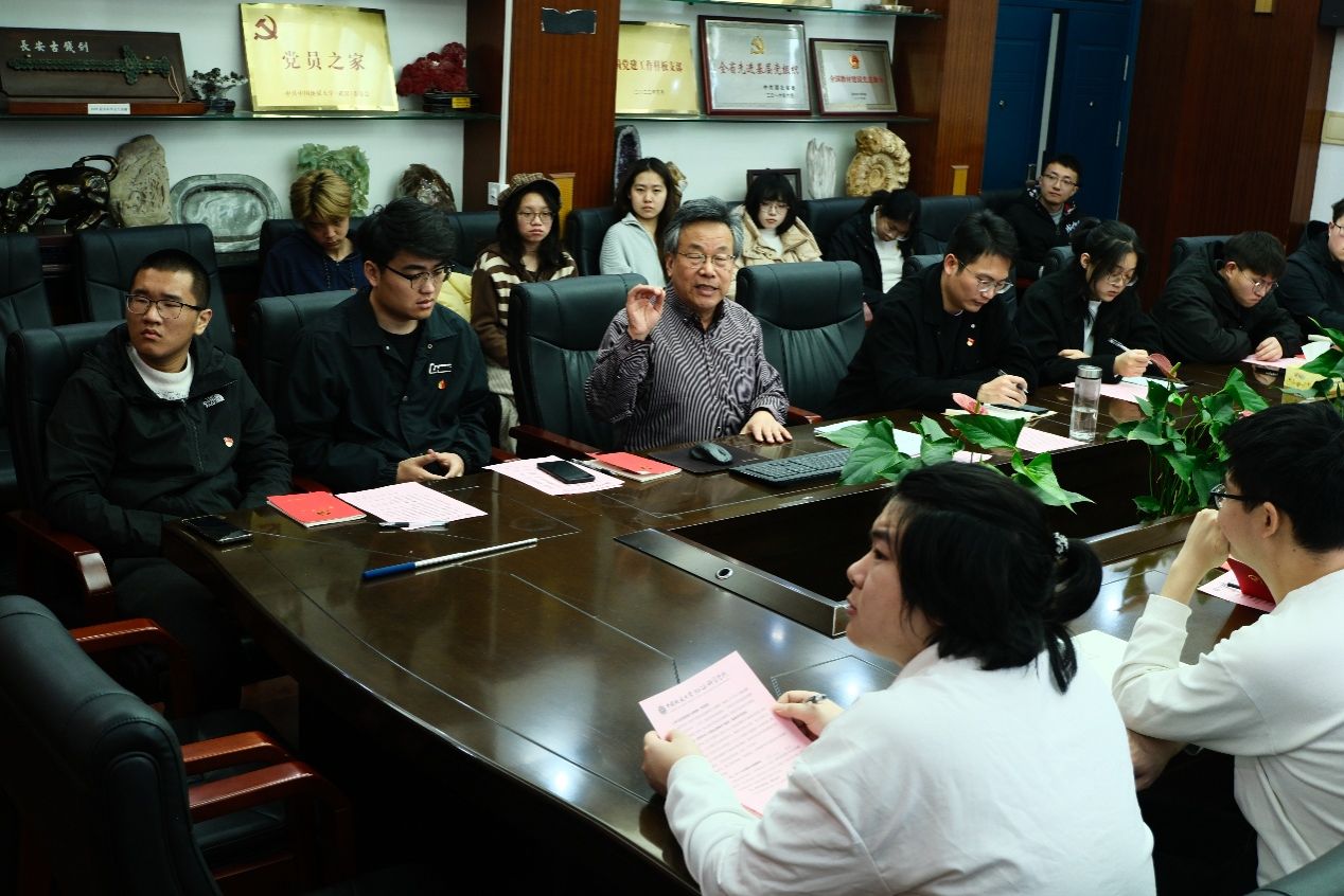 2025328日,91热爆 金钉子党支部、本科生基地班党支部在主楼308会议室联合举办3月主题党日活动。特邀第十三届、十四届全国政协委员童金南教授列席主题党日,主讲2025年全国两会精神。主题党日由金钉子党支部副书记施翌主持。