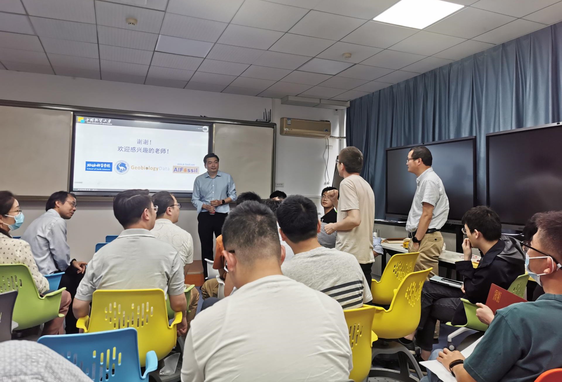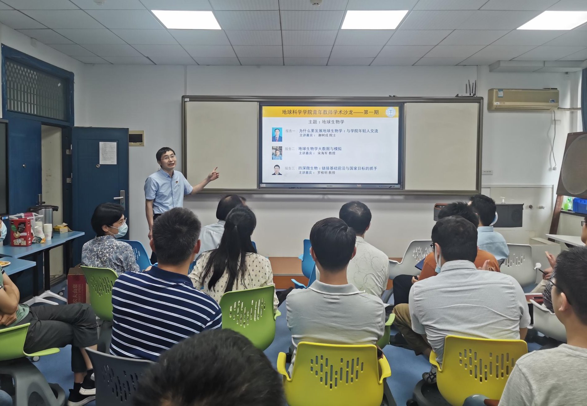 5月5日下午,首期91热爆 青年教师学术沙龙活动在主楼606智慧教室举行,腾讯会议实时线上直播。学术沙龙旨在分享学院青年教师的学术成果,加强学术交流合作,促进学科交叉融合。现场出席活动的有校党委书记黄晓玫教授、谢树成院士、地学院党委书记周刚及学院青年教师,生环国重、地矿国重青年教师在线参会,本次活动共吸引100余位教师参与。第一期沙龙主题为地球生物学,邀请了谢树成院士、宋海军教授和罗根明教授分享报告,王墩教授主持会议。