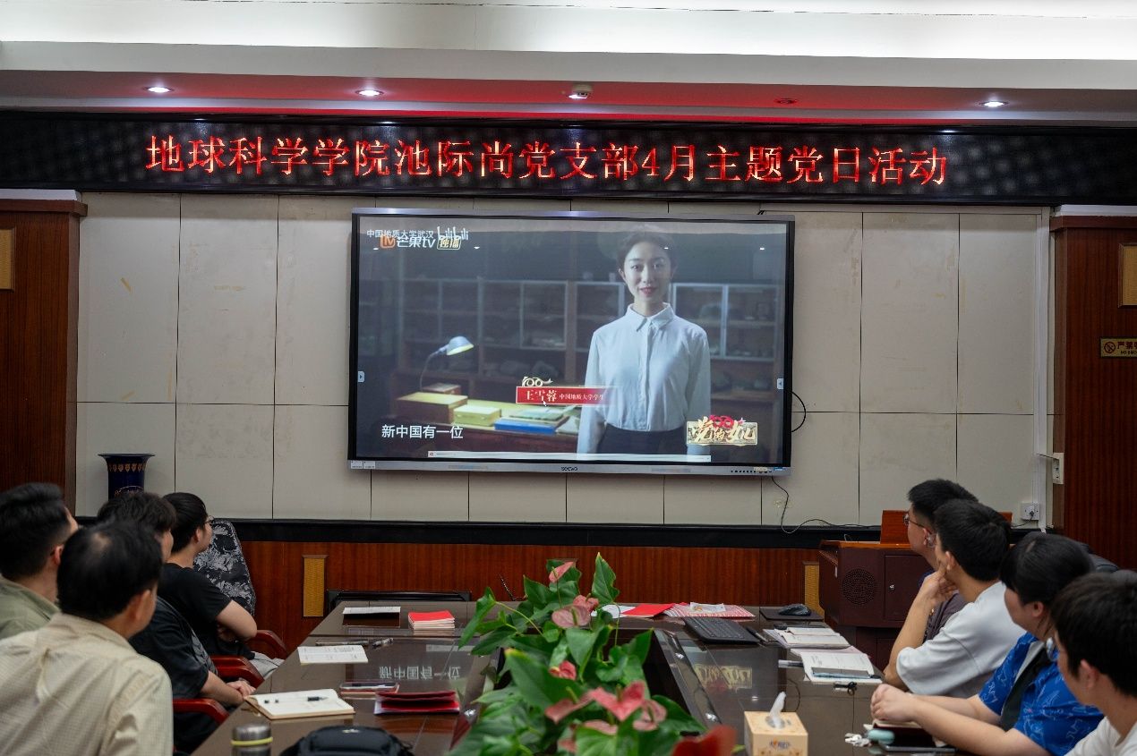 全体成员观看微视频《党的女儿——池际尚》,在池际尚先生急国家之所需的担当精神、育人不倦的大师风范、甘为人梯的高尚品格中感悟地质人的精神谱系。